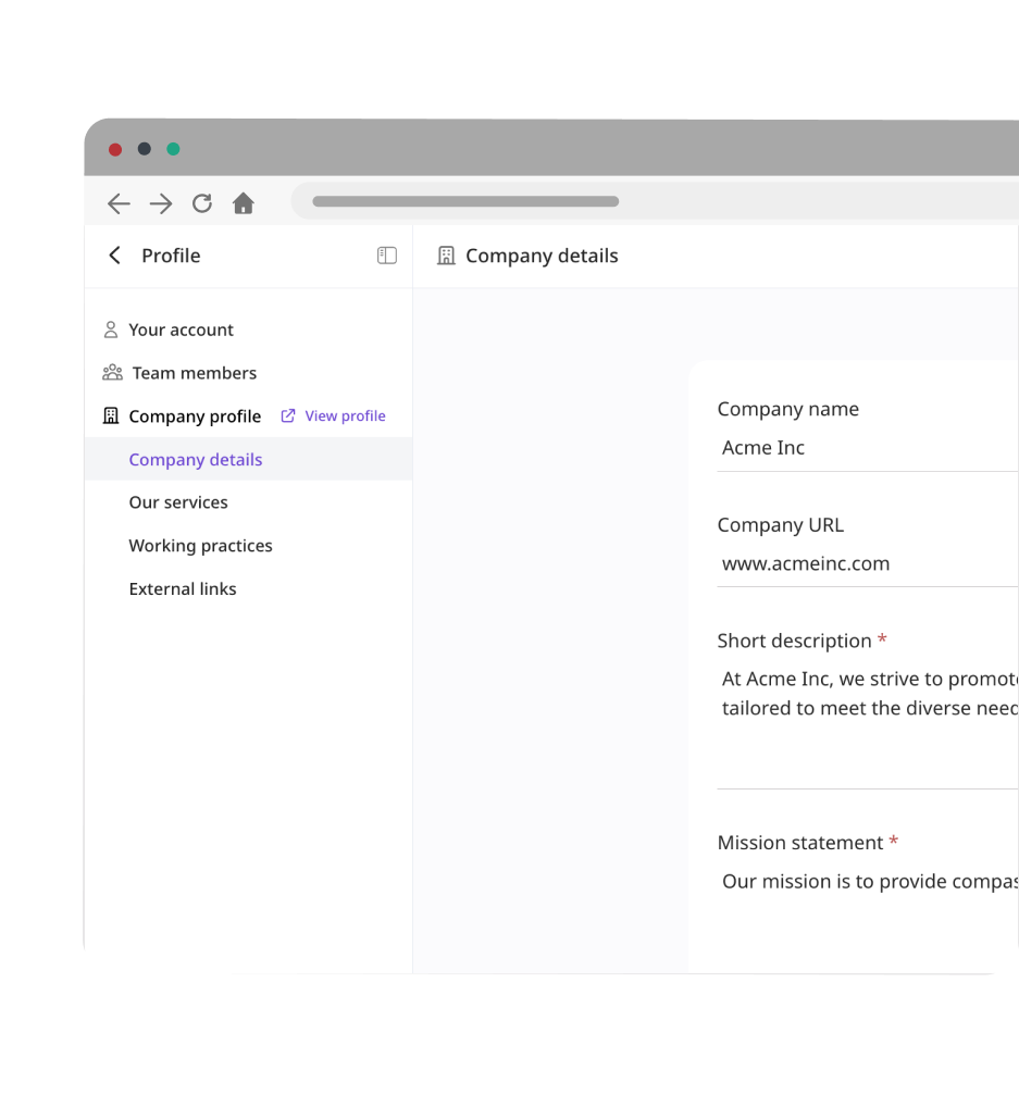 Profile Landing Page: You can use this as a digital front for your company, including essential details such as company services, working practices, and external links.